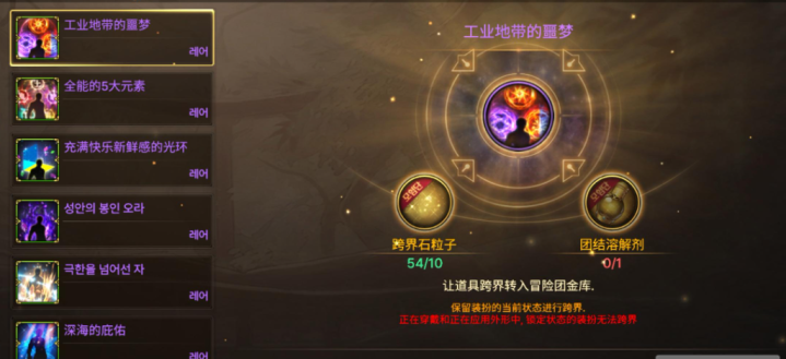 另外就是光环等时装也是可以通过这个功能进行跨界的,不过也需要10个跨界粒子。所以说大家的跨界粒子快停手别用了,可以留着跨界时装光环和天空套,这样才更加划算。